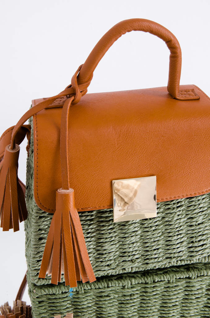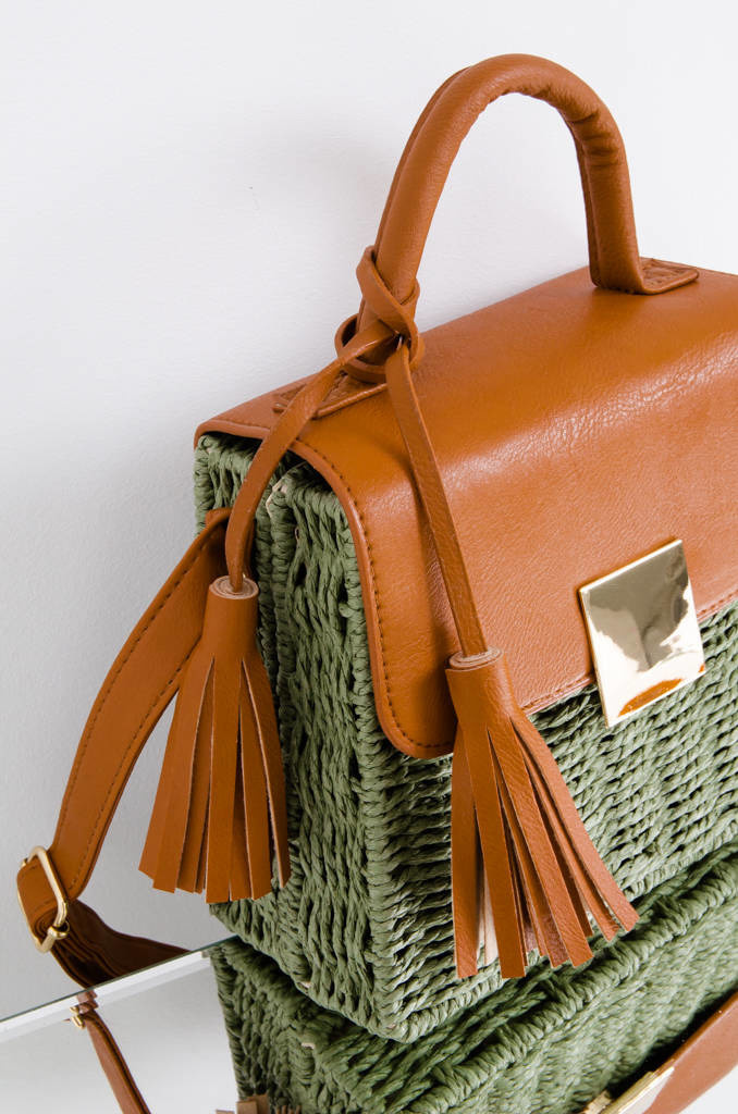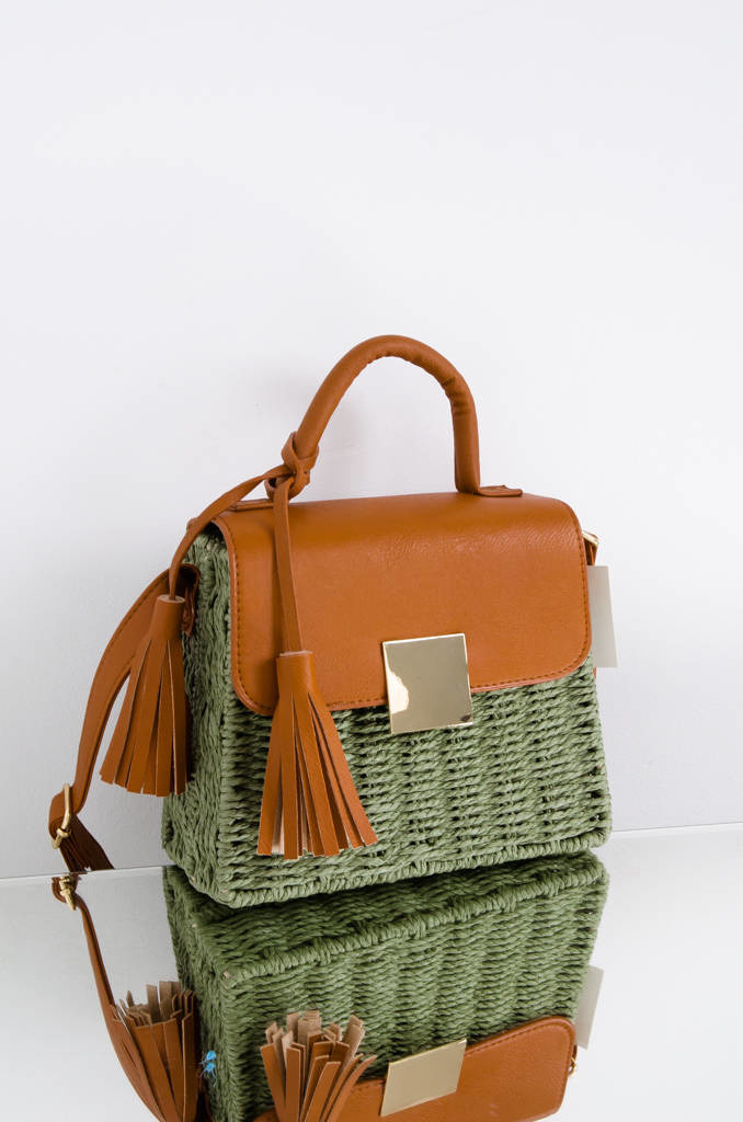TOREBKA PLECIONY KUFEREK Z PASKIEM I OZDOBNA ZAWIESZKĄ- ZIELONA