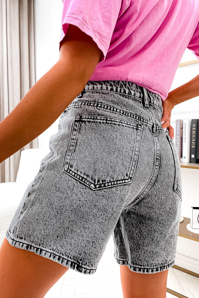 SZORTY JEANSOWE MOM FIT Z WYSOKIM STANEM- SZARE