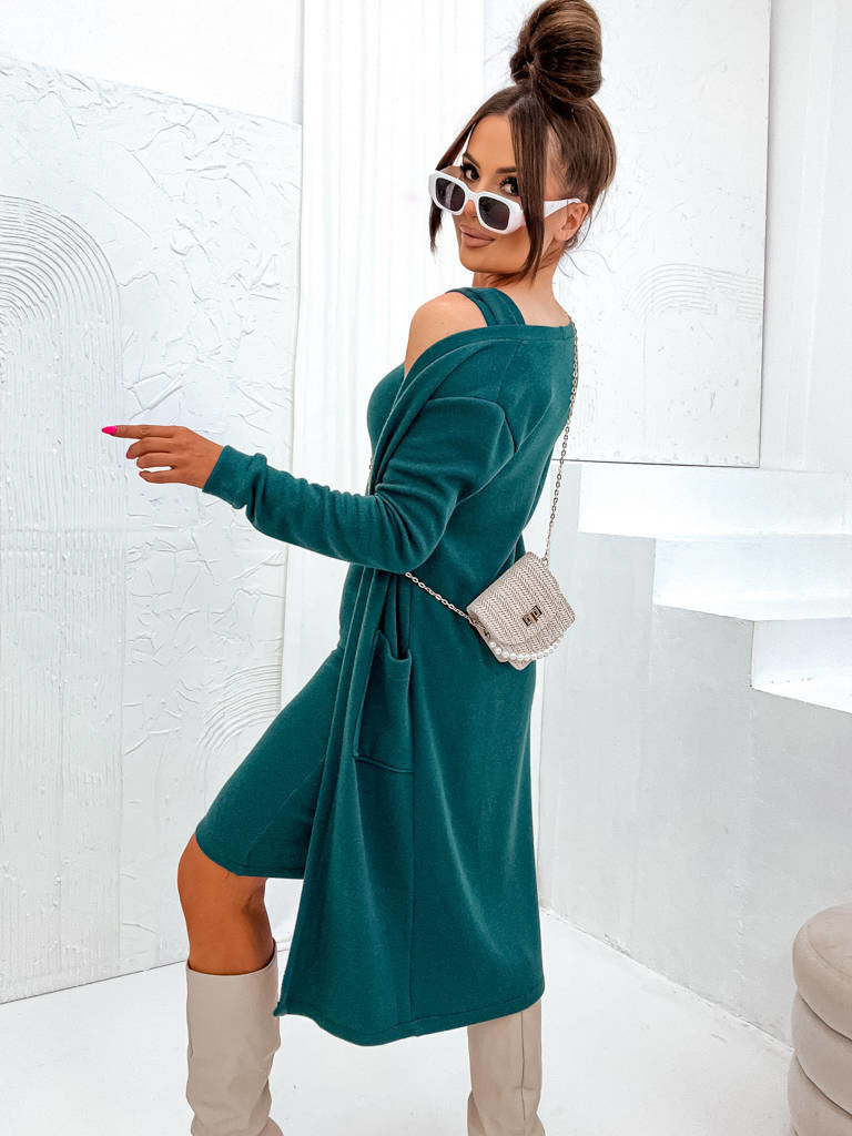 SUKIENKA SWETERKOWA BEZ RĘKAWÓW Z KARDIGANEM- ZIELONA