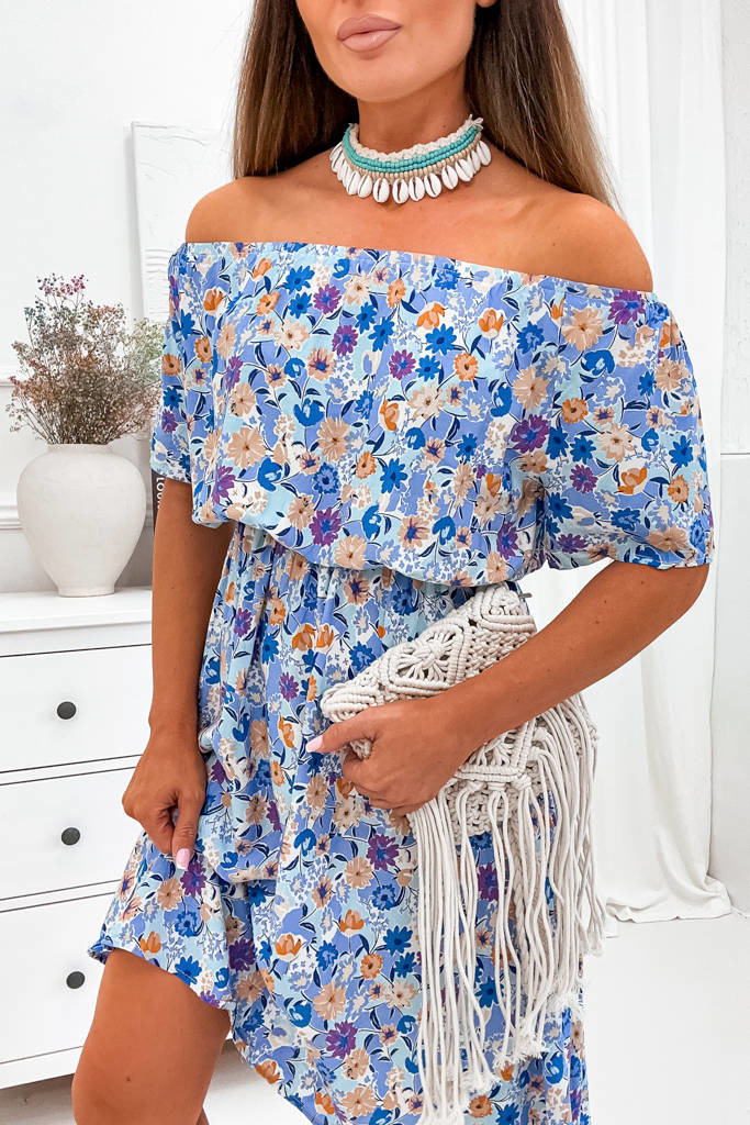 SUKIENKA W KWIATY HISZPANKA Z GUMKĄ W PASIE- NIEBIESKA