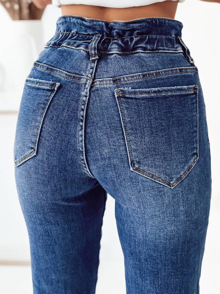 JASNE SPODNIE JEANSOWE MOM FIT Z GUZIKAMI I WYSOKIM STANEM- GRANATOWE