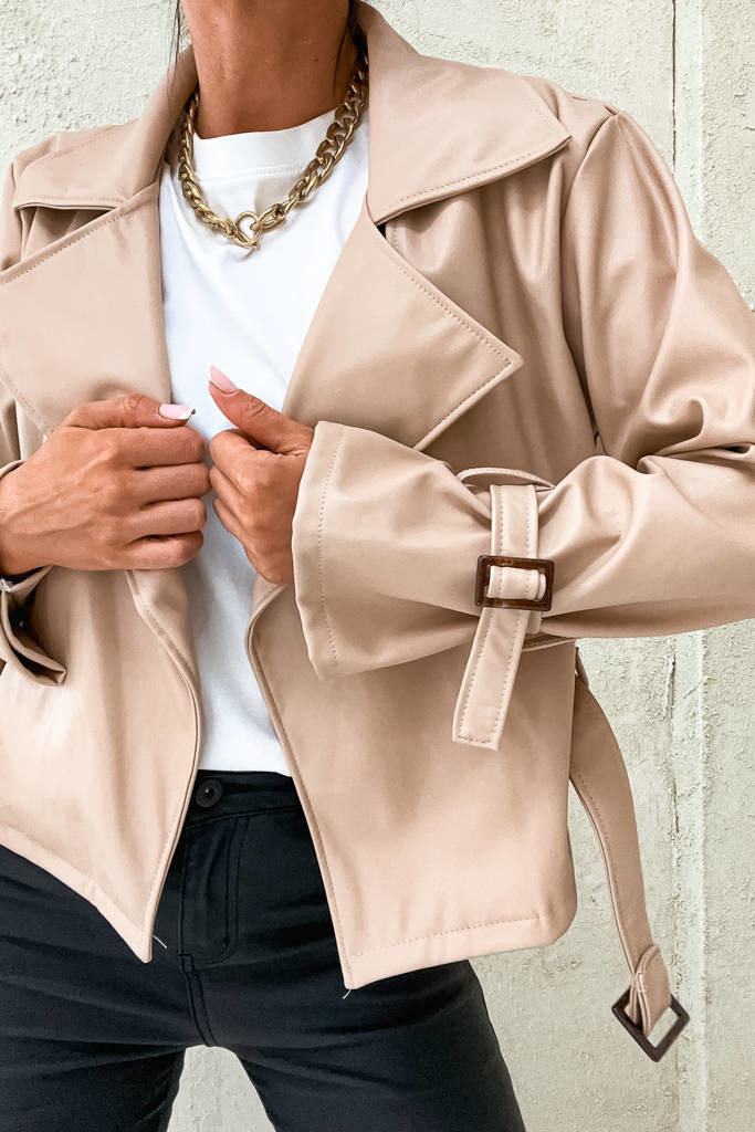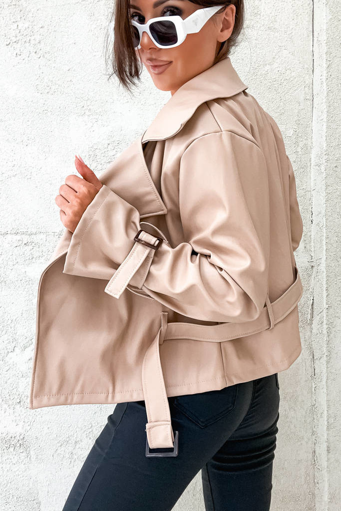 KRÓTKI TRENCZ RAMONESKA Z IMITACJI SKÓRY- BEŻOWY