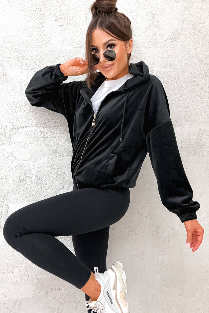 BLUZA ZAMSZOWA Z OZDOBNYM ZAMKIEM- CZARNA