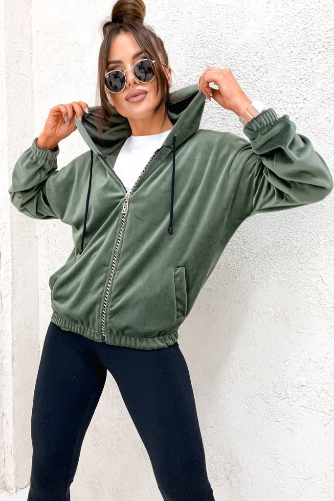 BLUZA ZAMSZOWA Z OZDOBNYM ZAMKIEM- ZIELONA