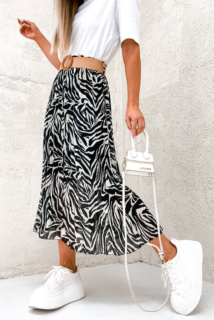 SPÓDNICA MIDI ZE ZWIERZĘCYM PRINTEM- ZEBRA