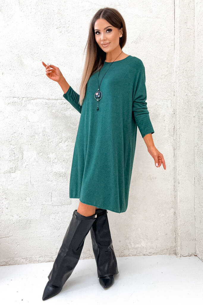 CIEMNO ZIELONA SUKIENKA MIDI OVERSIZE+ NASZYJNIK
