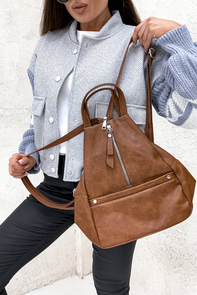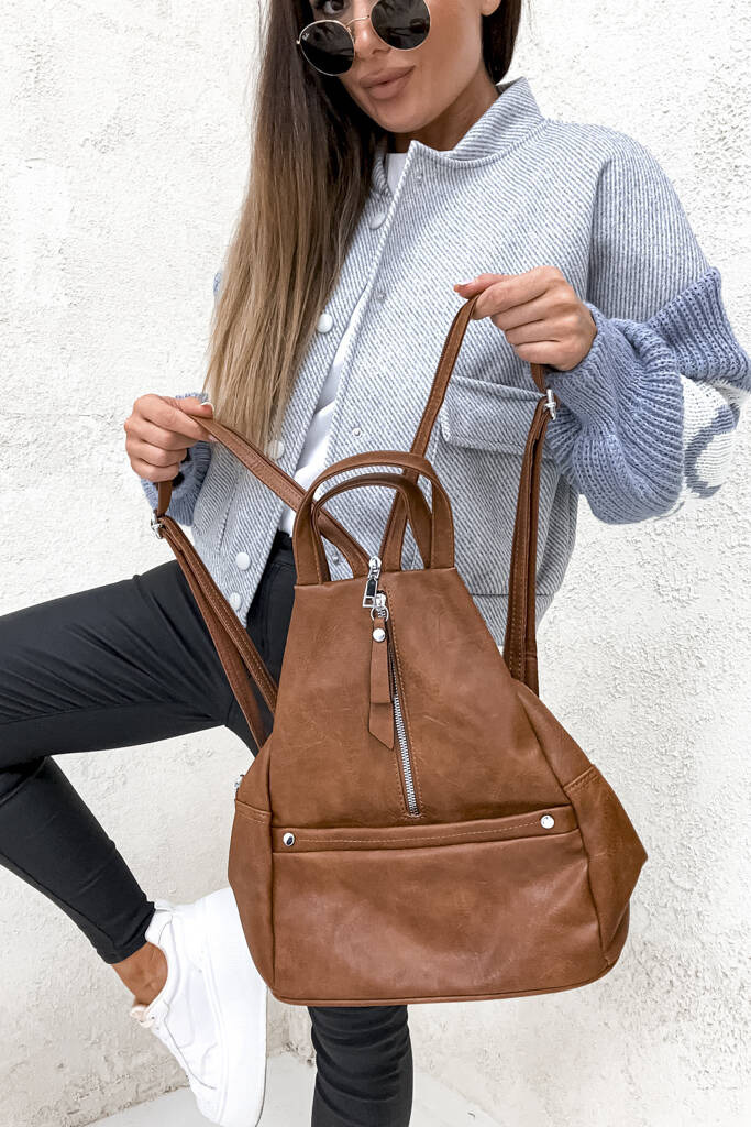PLECAK Z OZDOBNYM ZAMKIEM I KIESZONKĄ Z PRODU- BRĄZOWY