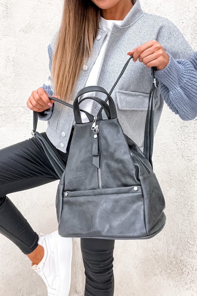 PLECAK Z OZDOBNYM ZAMKIEM I KIESZONKĄ Z PRODU- SZARY