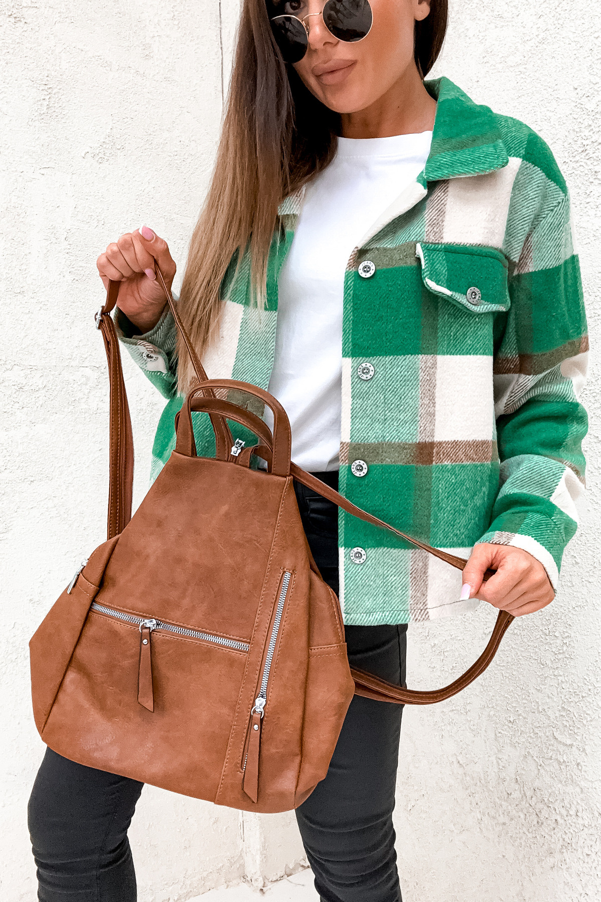 PLECAK Z IMITACJI SKÓRY Z OZDOBNYMI ZAMKAMI- BRĄZOWY