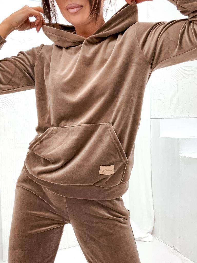 WELUROWY KOMPLET DRESOWY SPODNIE+ BLUZA Z KAPTUREM- BRĄZOWY