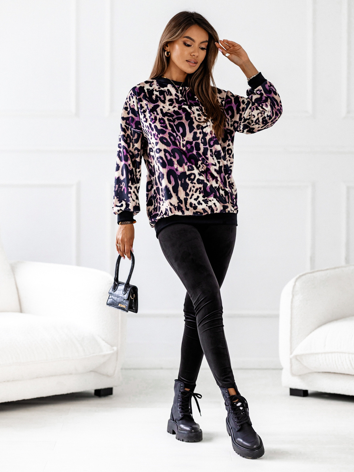 KOMPLET DRESOWY LEGGINSY+ BLUZA W PANTERKĘ+ FIOLETOWY