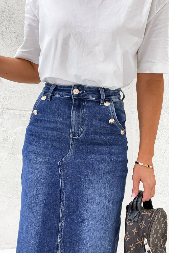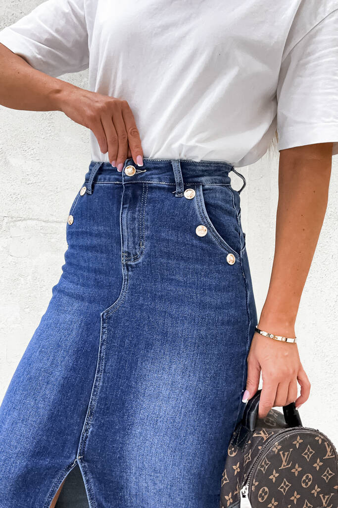 SPÓDNICA JEANSOWA PUSH UP Z ROZCIĘCIEM I ZŁOTYMI GUZIKAMI