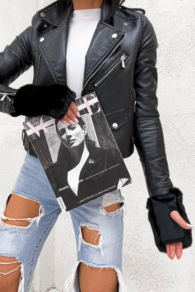 RAKAWICZKI BEZ PALCÓW Z OZDOBNYM FUTERKIEM - CZARNE