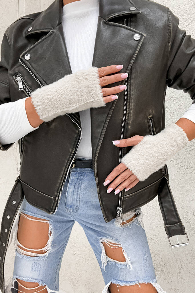 FUTRZANE RĘKAWICZKI BEZ PALCÓW- BEŻOWE