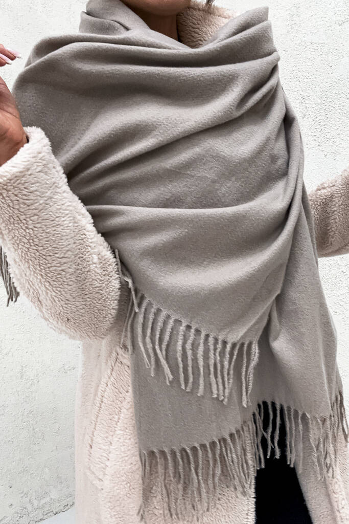 KLASYCZNY SZAL Z FRĘDZLAMI- BRĄZOWY