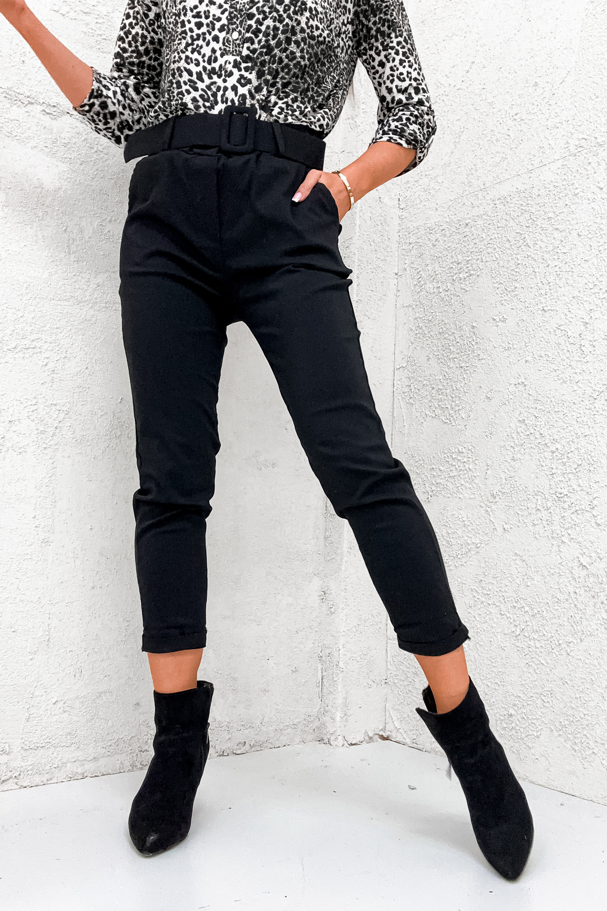 ELEGANCKIE SPODNIE MATERIAŁOWE Z PASKIEM- CZARNE