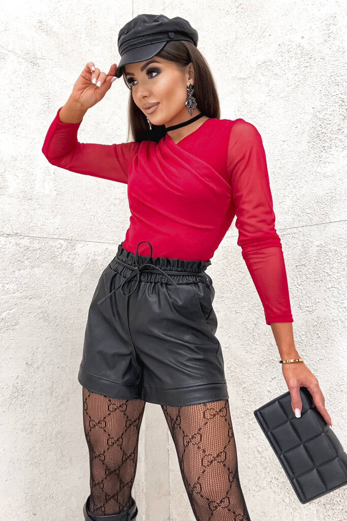 SPODENKI Z IMITACJI SKÓRY Z GUMĄ I WIĄZANIEM W PASIE- CZARNE