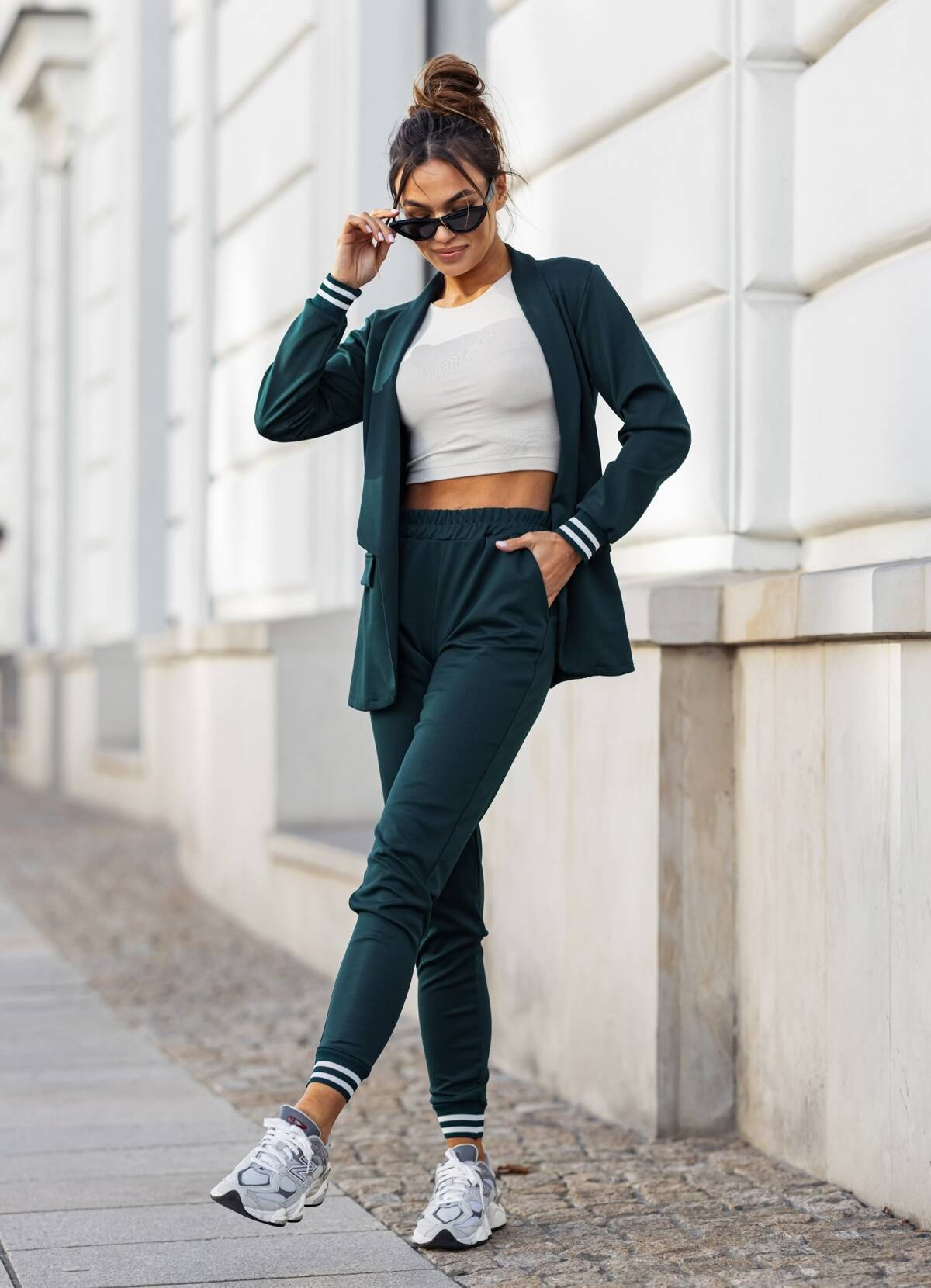 KOMPLET SPODNIE+ MARYNARKA ZE ŚCIĄGACZAMI- BUTELKOWA ZIELEŃ