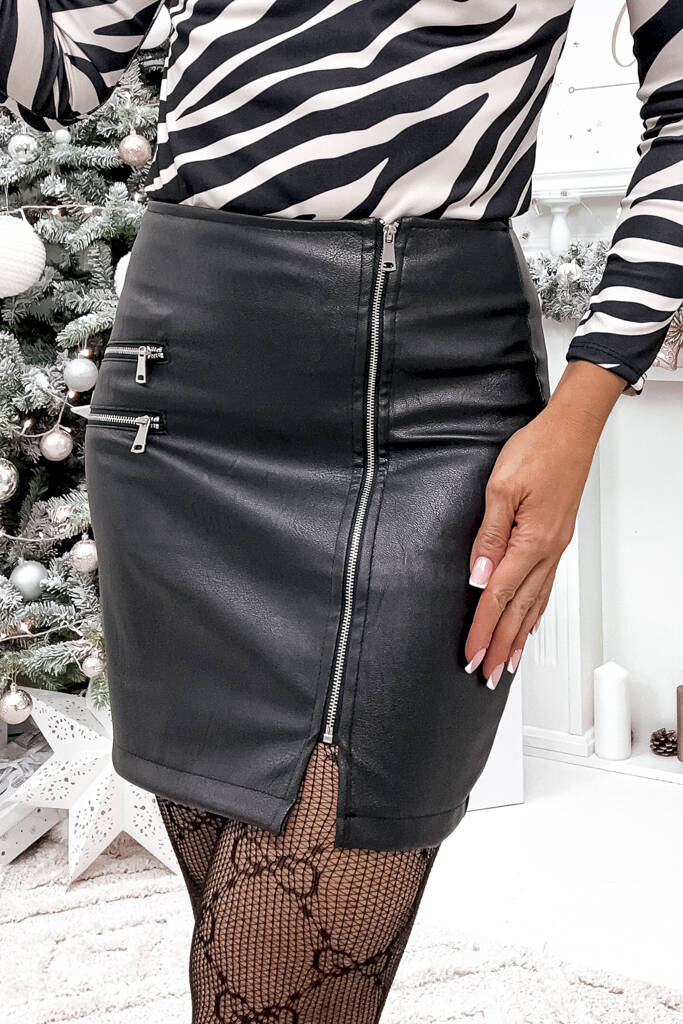 SPÓDNICA MINI WOSKOWANA Z OZDOBNYMI ZAMKAMI- CZARNA