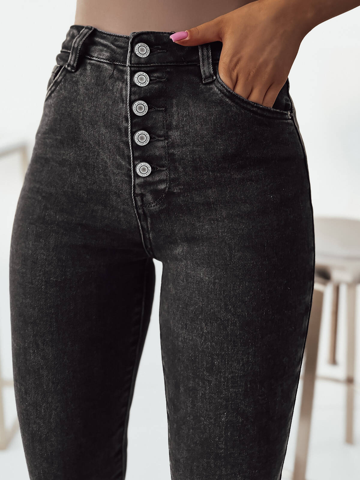 CZARNE SPODNIE JEANSOWE Z GUZIKAMI- BARDZO WYSOKI STAN