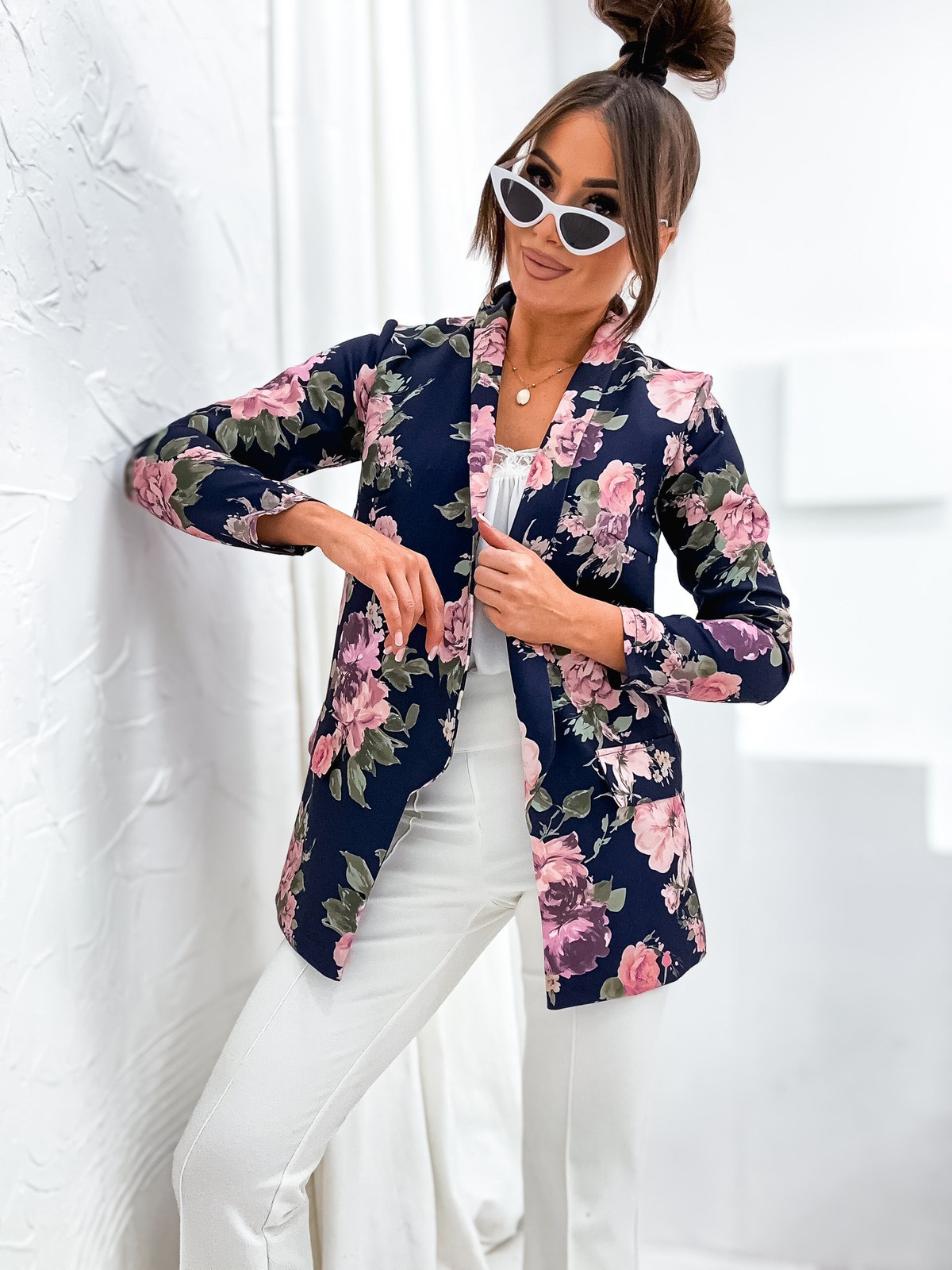 ELEGANCKA WZORZYSTA MARYNARKA- GRANATOWA