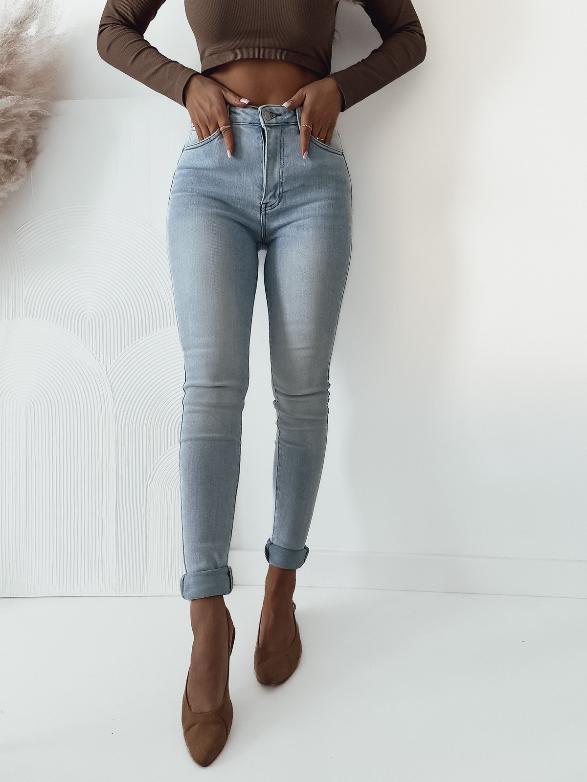 JASNO NIEBIESKIE SPODNIE JEANSOWE PUSH UP Z PRZETARCIAMI- BARDZO WYSOKI STAN