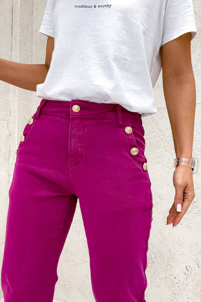 SPODNIE MOM FIT Z OZDOBNYMI GUZIKAMI NA KIESZENIACH - CIEMNY RÓŻ
