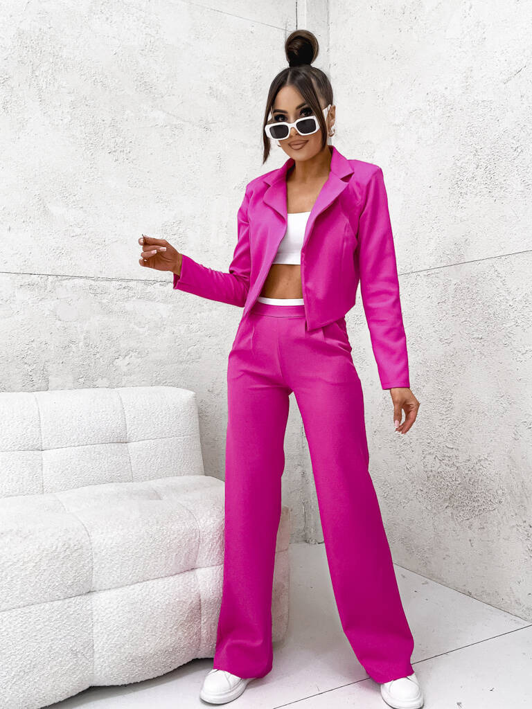 KOMPLET KRÓTKA MARYNARKA+ SPODNIE Z SZEROKĄ NOGAWKĄ- FUKSJA