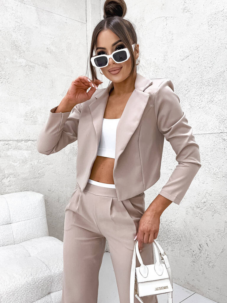 KOMPLET KRÓTKA MARYNARKA+ SPODNIE Z SZEROKĄ NOGAWKĄ- BEŻOWY