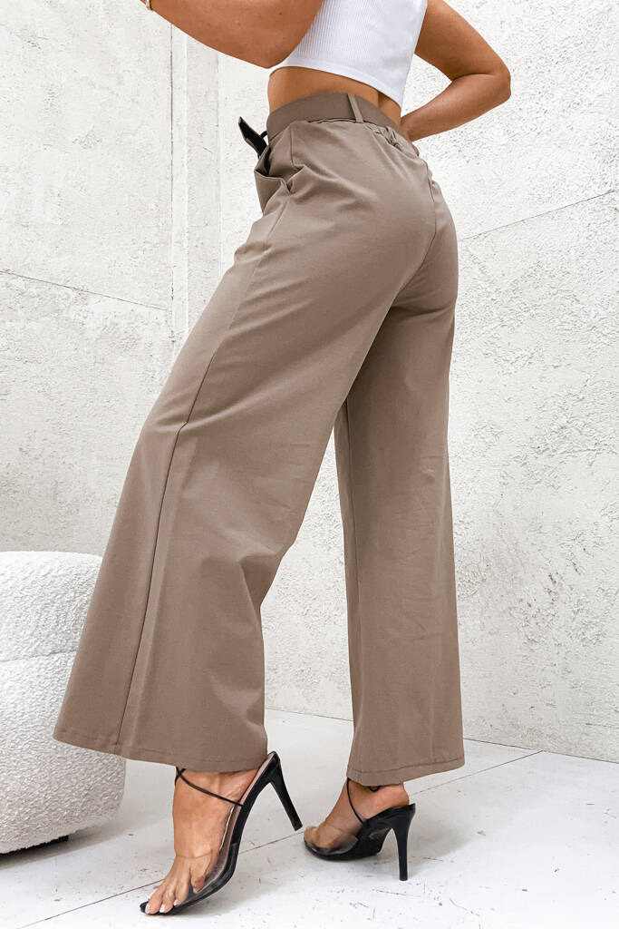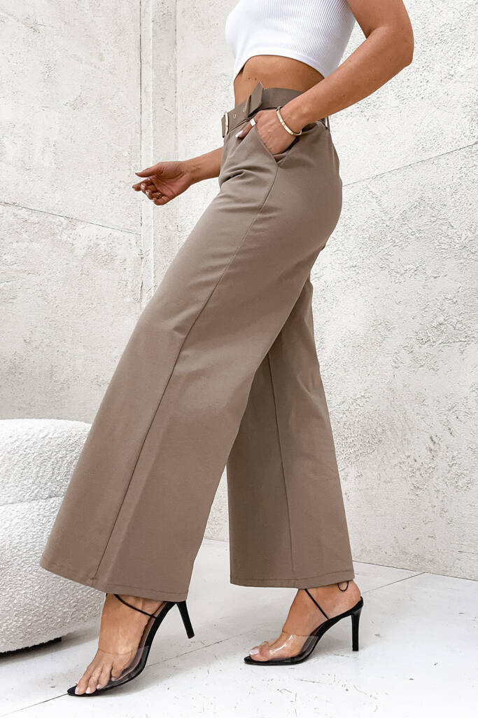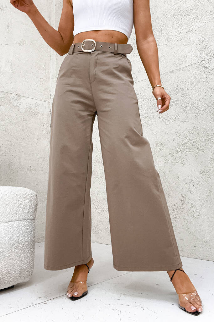 SPODNIE BAWEŁNIANE ONESIZE Z SZEROKĄ NOGAWKĄ I PASKIEM- BRĄZOWE