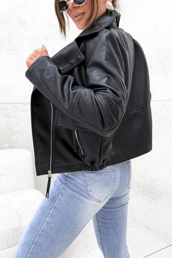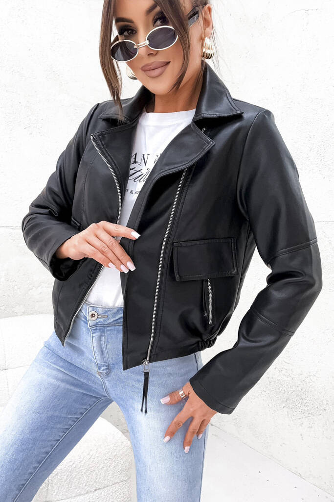 KURTKA Z IMITACJI SKÓRY RAMONESKA BOMBERKA- CZARNA