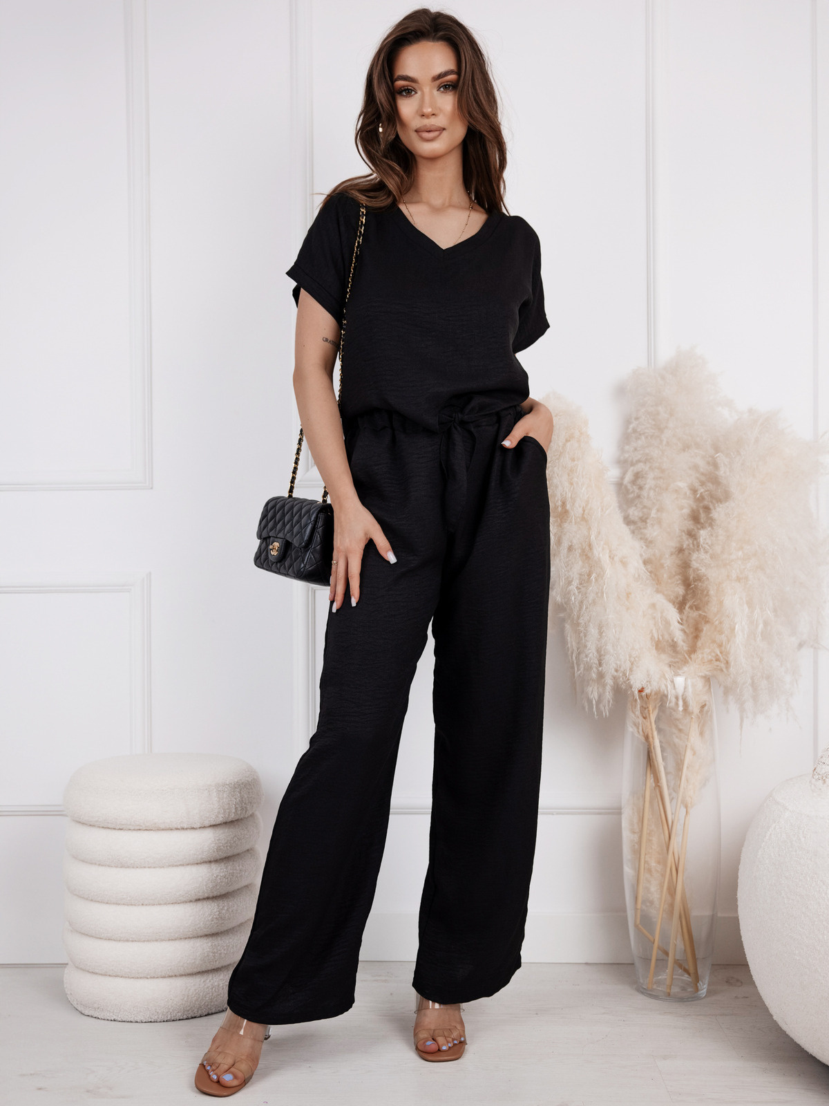 KOMPLET BLUZKA W SEREK+ SPODNIE- CZARNY