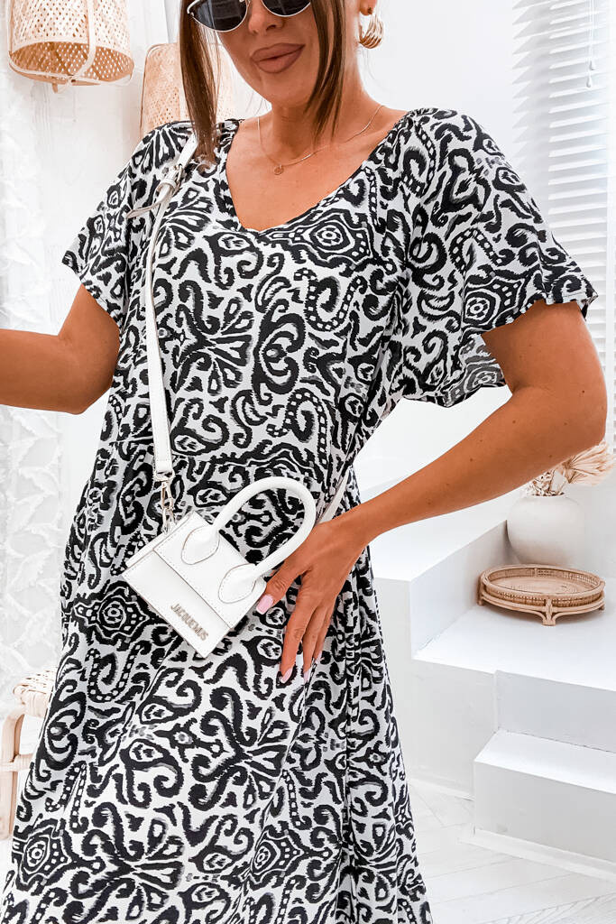 WZORZYSTA SUKIENKA MAXI DEKOLT W SEREK- CZARNA