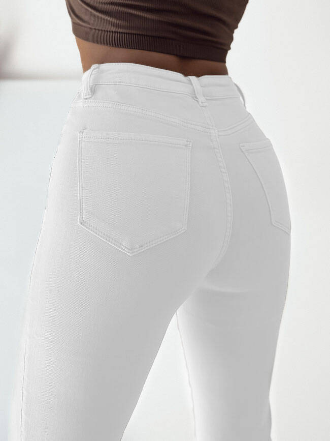 SPODNIE Z WYSOKIM STANEM I WYCIĘCIEM NA NOGAWCE- BIAŁE