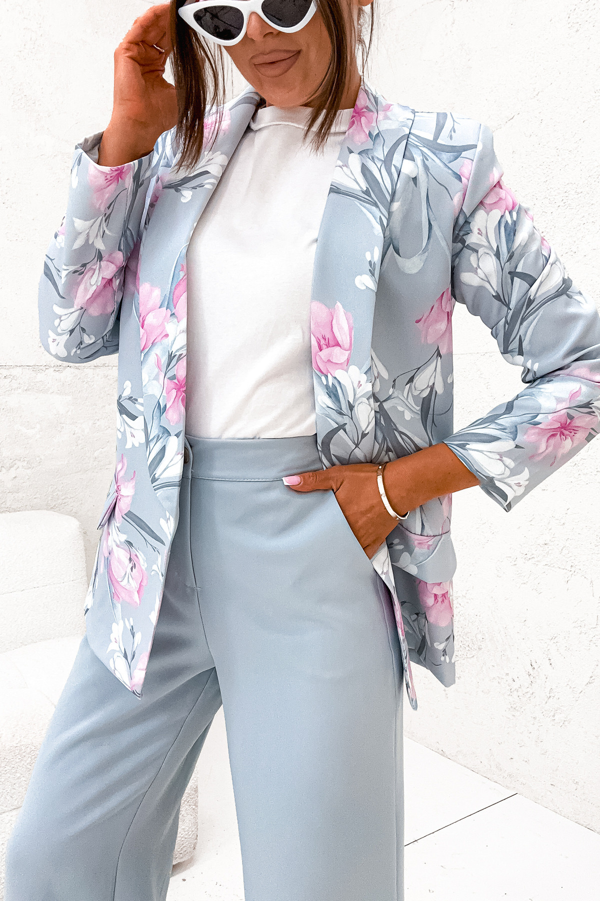 KOMPLET MARYNARKA W KWIATY + SZEROKIE SPODNIE- SZARY