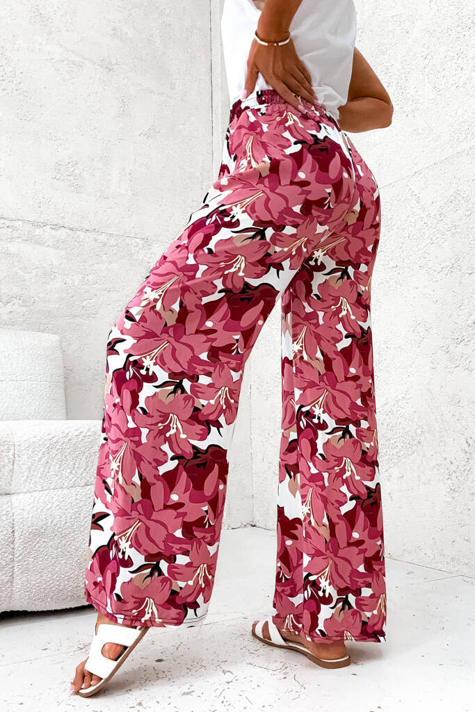 SPODNIE BAWEŁNIANE W KWIATY- RÓŻOWE