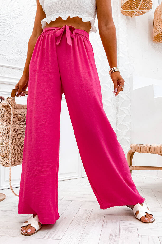 SPODNIE SZEROKIE Z GUMĄ I WIĄZANIEM W PASIE- CIEMNO RÓŻOWE