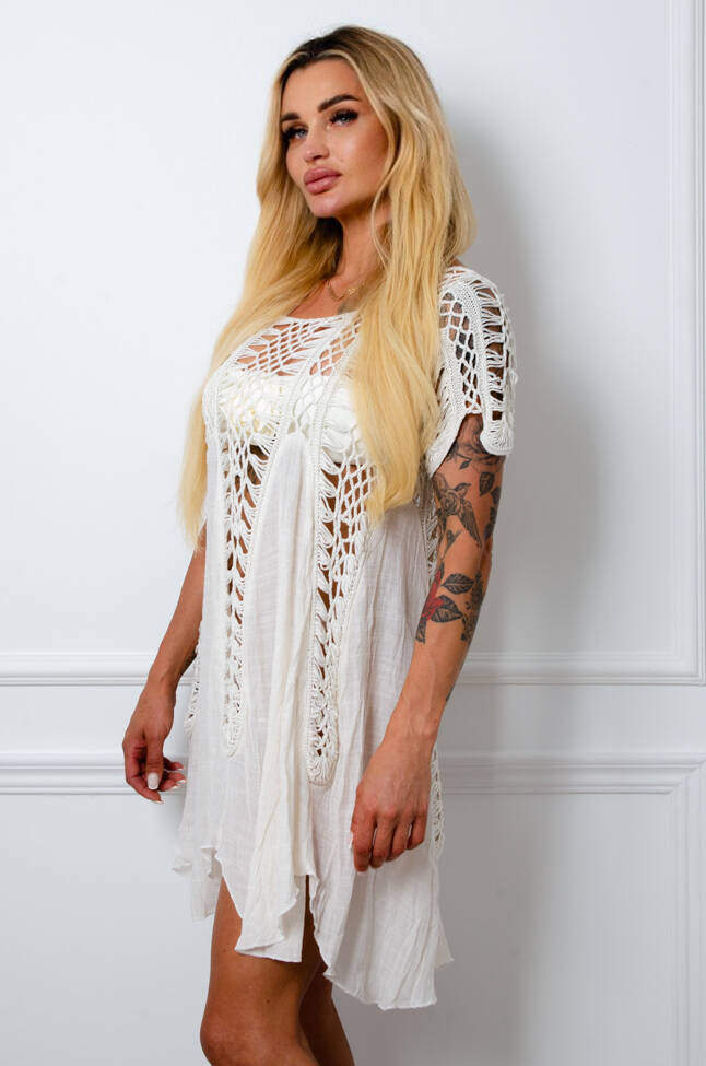 SUKIENKA PLAŻOWA Z AŻUROWYMI ZDOBIENIAMI- BEŻOWA