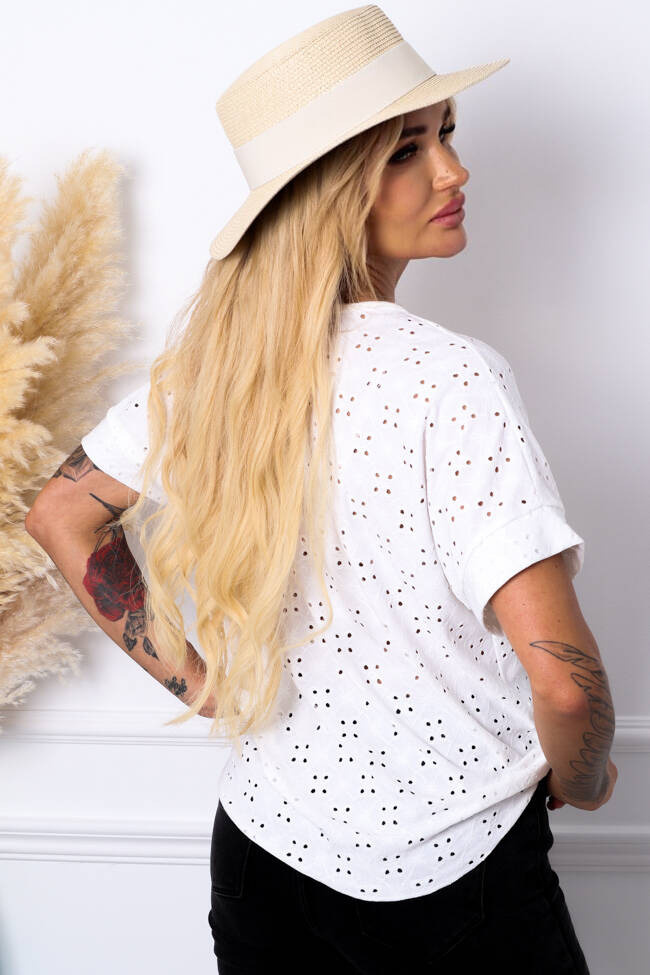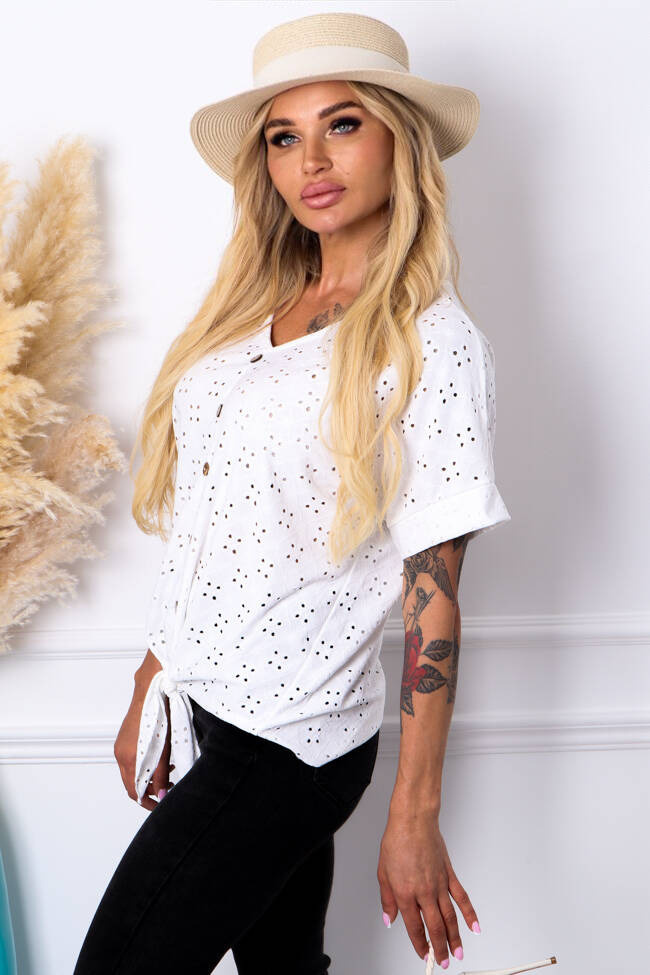 BLUZKA AŻUROWA Z GUZIKAMI I WIĄZANIEM NA DOLE- BIAŁA