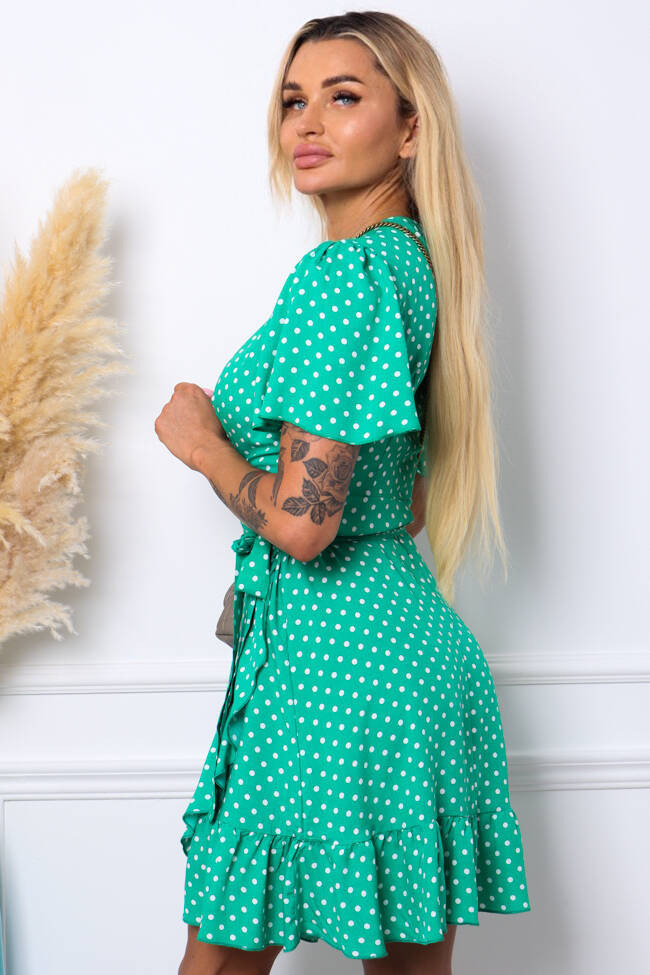 SUKIENKA KOPERTOWA W KROPKI Z PASKIEM- CIEMNO ZIELONA