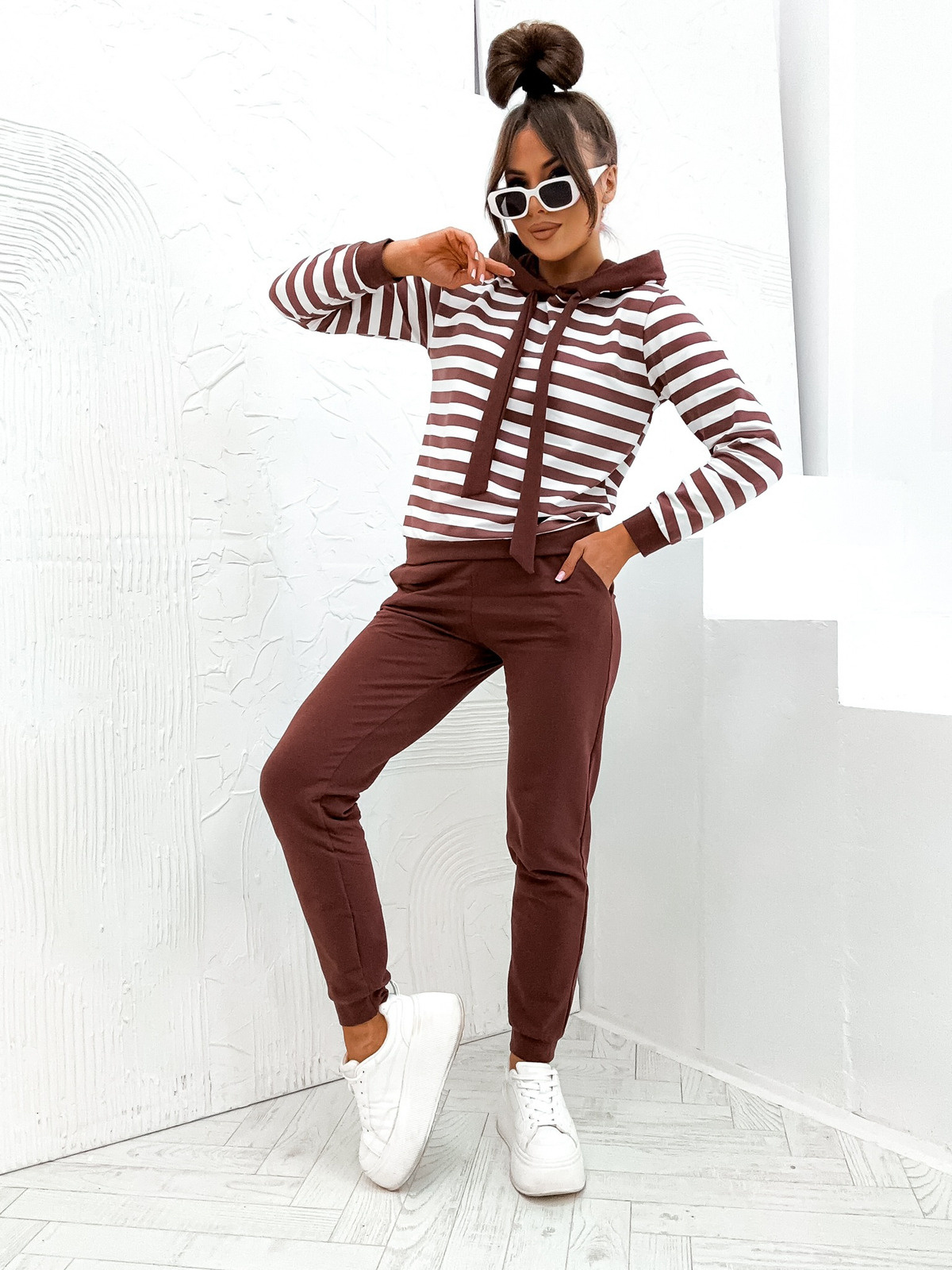 KOMPLET DRESOWY BLUZA W PASKI+ SPODNIE- CZEKOLADOWY