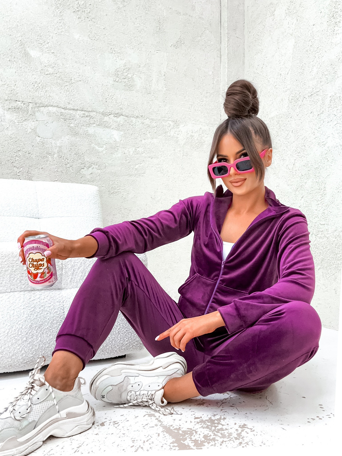 WELUROWY KOMPLET DRESOWY BLUZA+ SPODNIE- ŚLIWKOWY