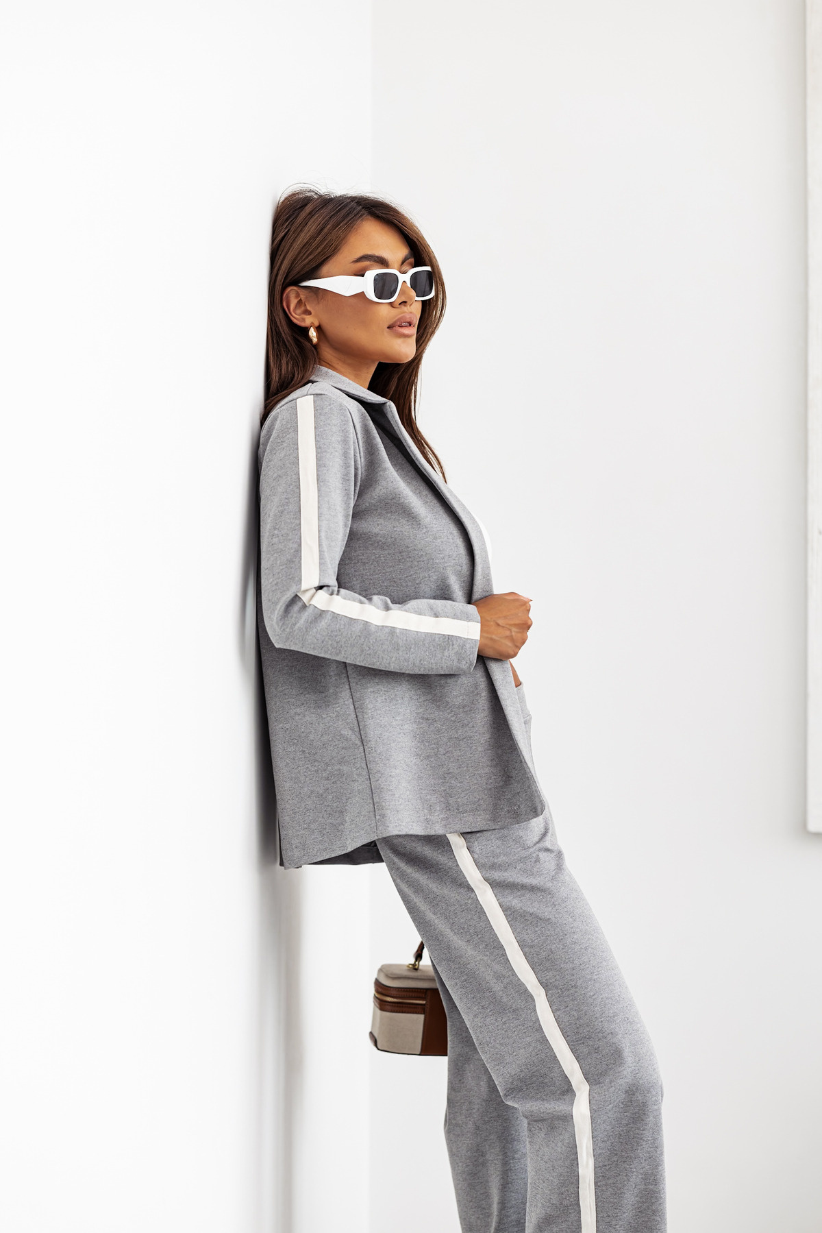 KOMPLET Z SZWEROKIMI SPODNIAMI+MARYNARKA- SZARY