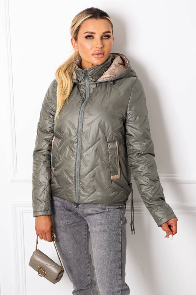KURTKA PRZEJŚCIOWA ZE ŚCIAGACZAMI PO BOKU TYŁ DŁUŻSZY- ZIELONA