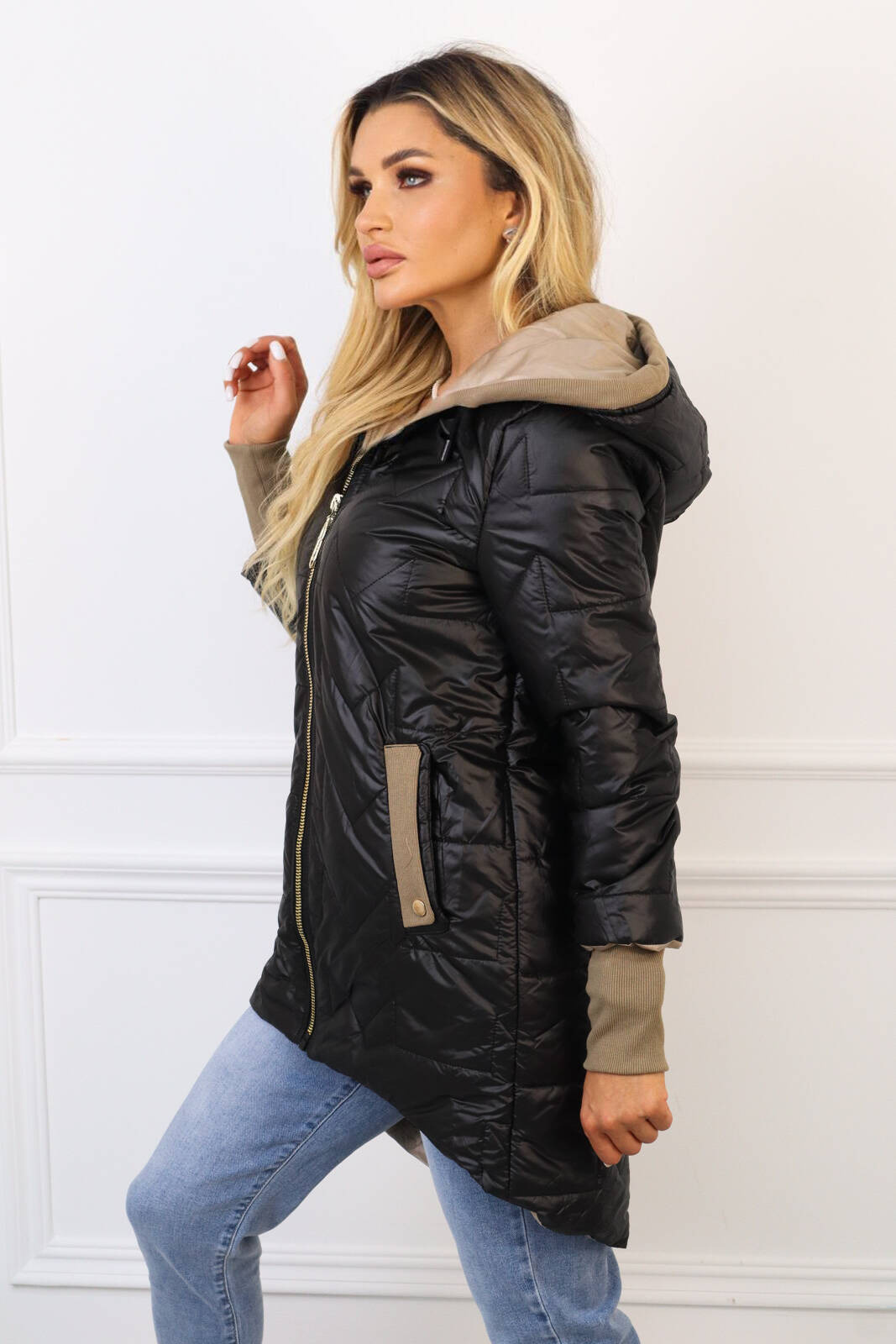 DŁUGA ASYMETRYCZNA KURTKA PRZEJŚCIOWA- CZARNA