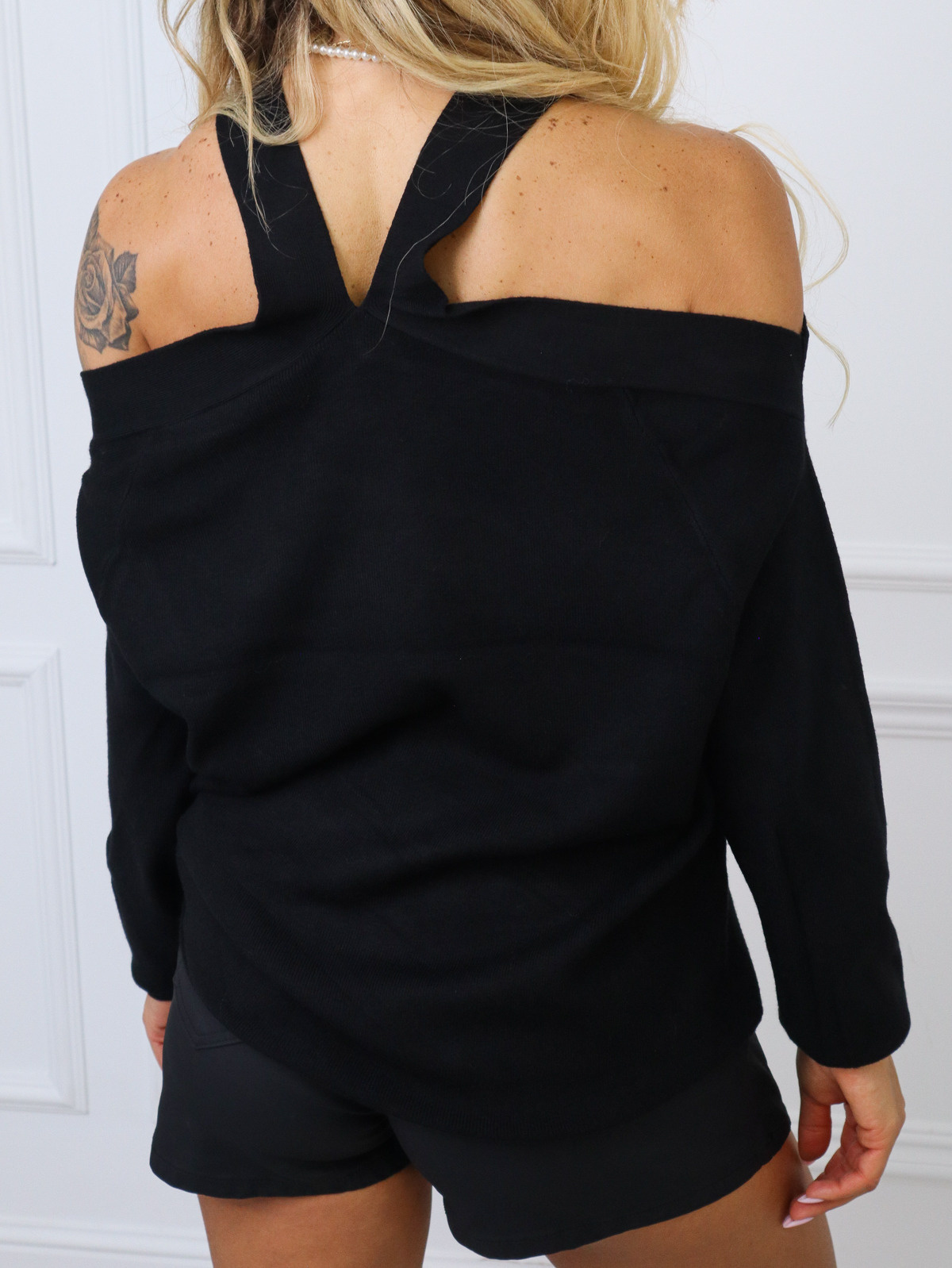 SWETER Z OZDOBNYM DEKOLTEM- CZARNY