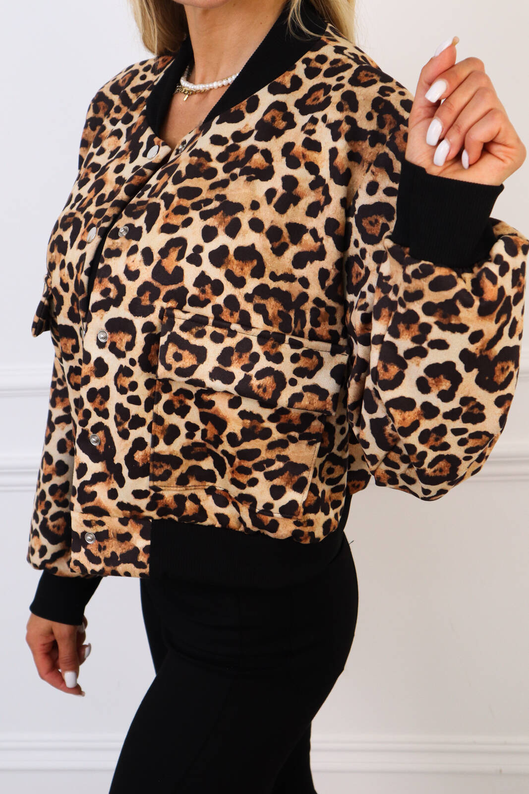 BLUZA W PANTERKĘ Z KIESZENIAMI ZAPINANA NA ZATRZASKI