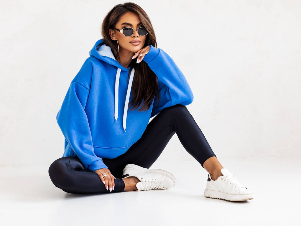 CIEPŁA BLUZA OVERSIZE Z KAPTUREM I ŚCIĄGACZEM-NIEBIESKA
