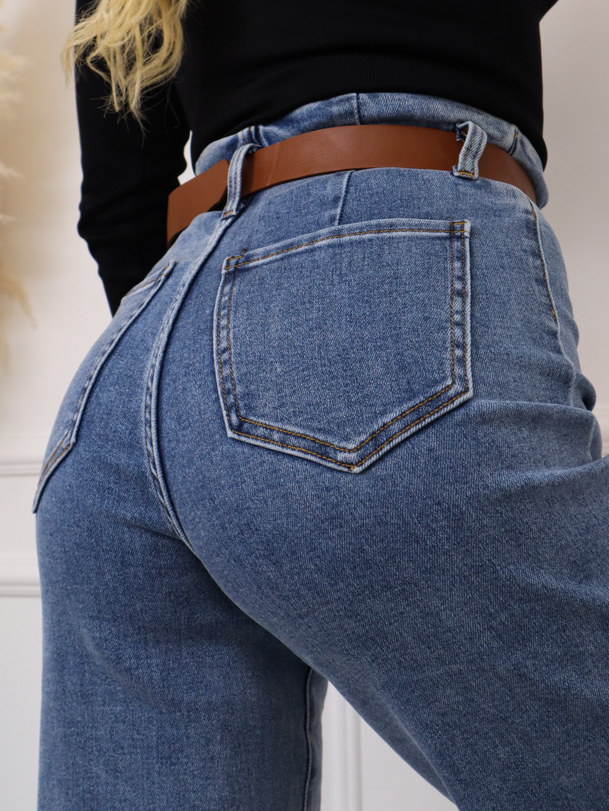SPODNIE JEANSOWE Z SZEROKIMI NOGAWKAMI+ PASEK