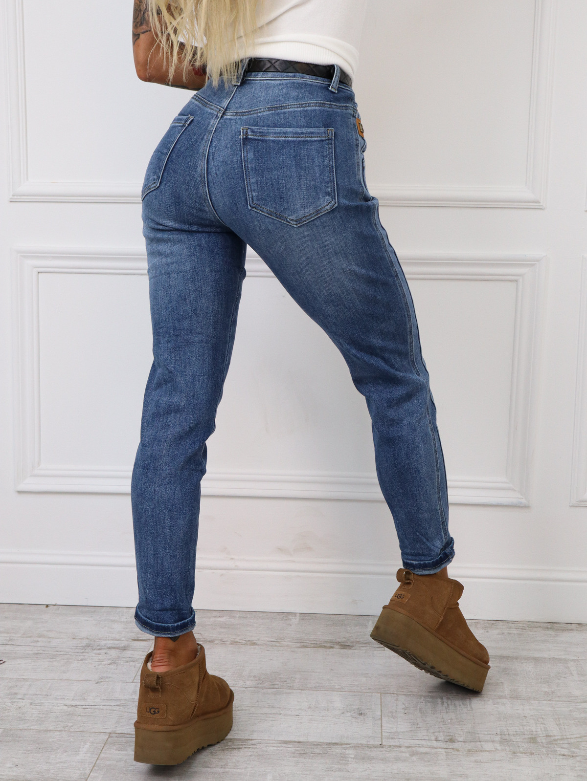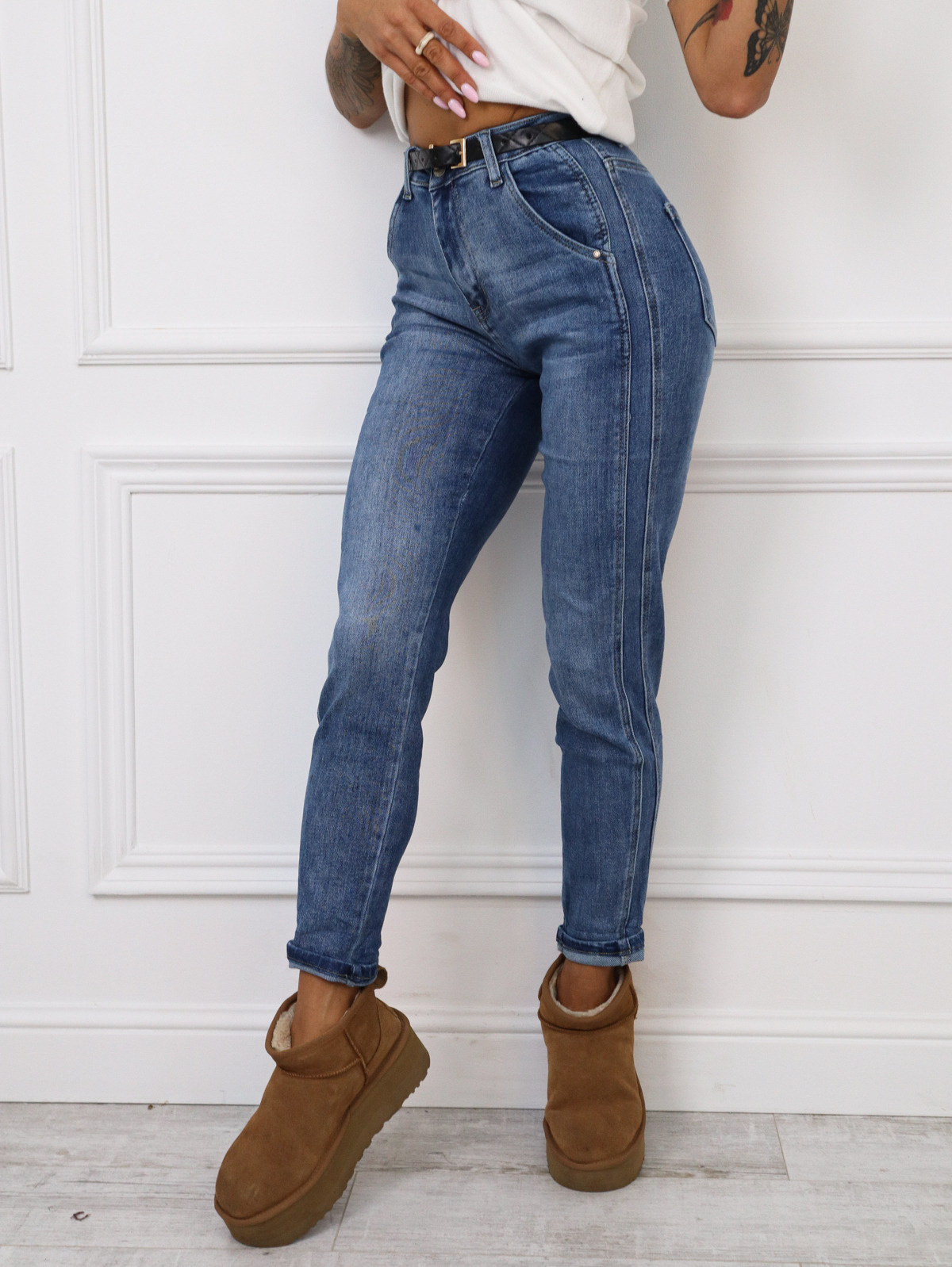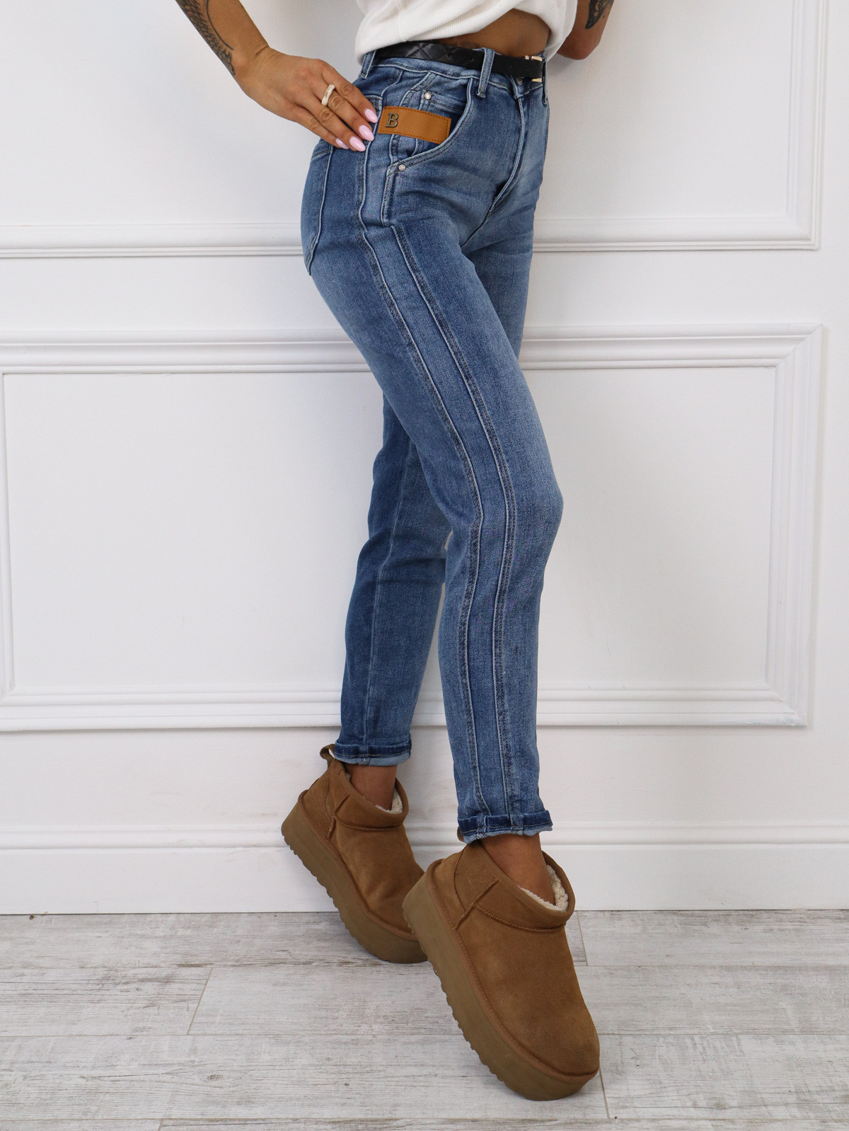 SPODNIE JEANSOWE Z OZDOBNYMI PRZESZYCIAMI+ PASEK